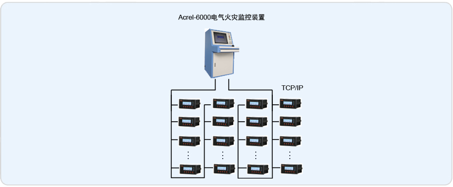 本項(xiàng)目上現(xiàn)場(chǎng)配電箱內(nèi)安裝ARCM200L-J1漏電火災(zāi)探測(cè)器配合AKH-0.66L剩余電流互感器,消防控制室內(nèi)安裝有Acrel-6000電氣火災(zāi)監(jiān)控主機(jī)。安科瑞漏電火災(zāi)探測(cè)器均采用Modbus-RTU通訊協(xié)議,RS-485接口,通過(guò)兩條屏蔽雙絞線連接至監(jiān)控主機(jī)。